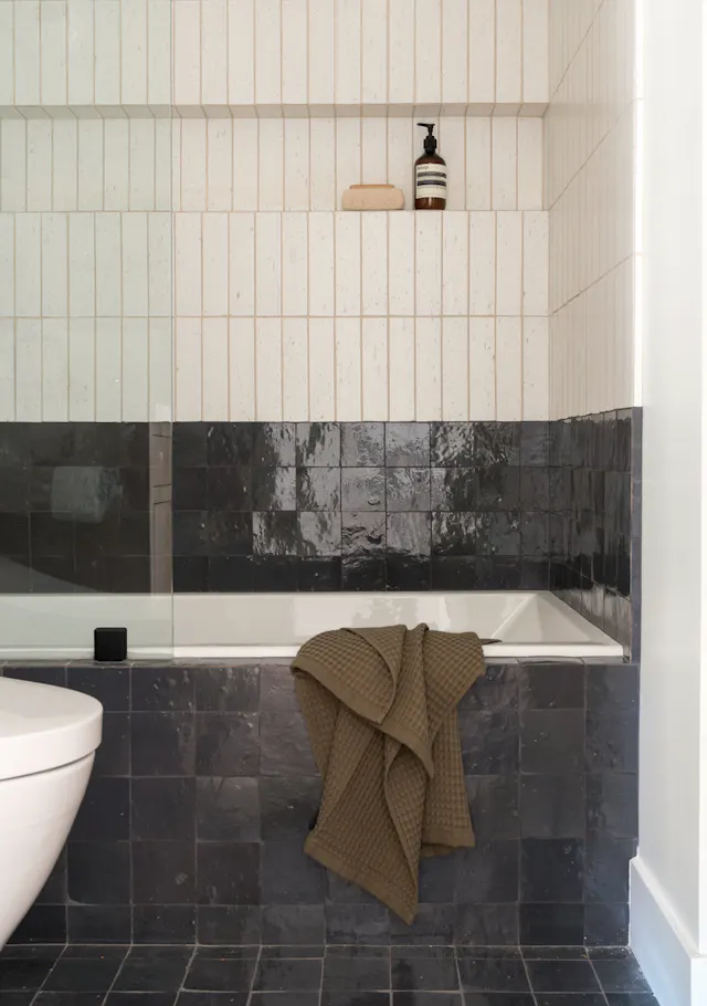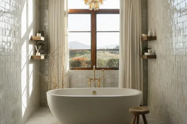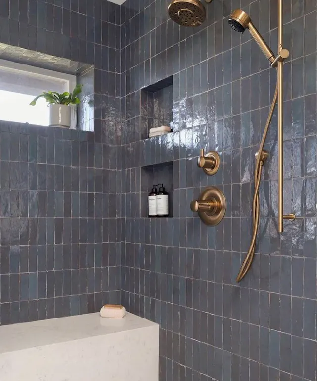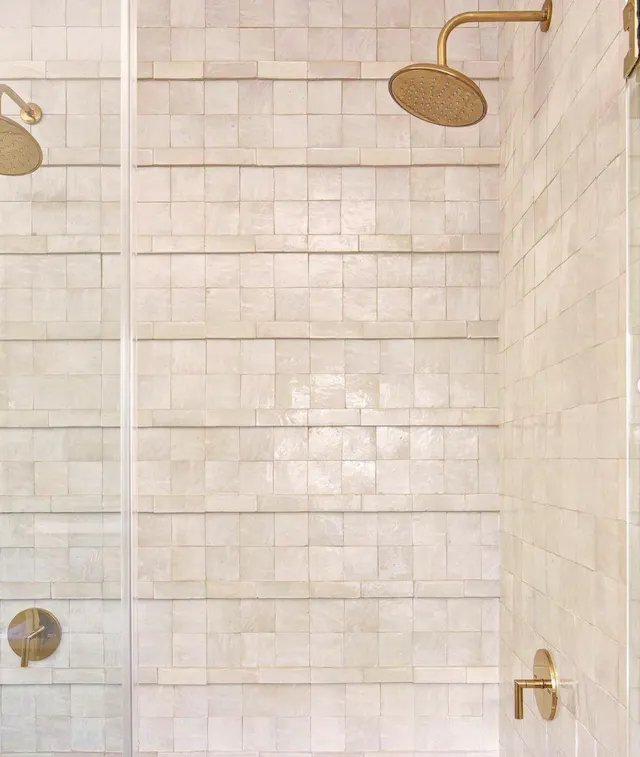 Add a luxurious and spa-like feel with beautifully glazed Zellige tiles.